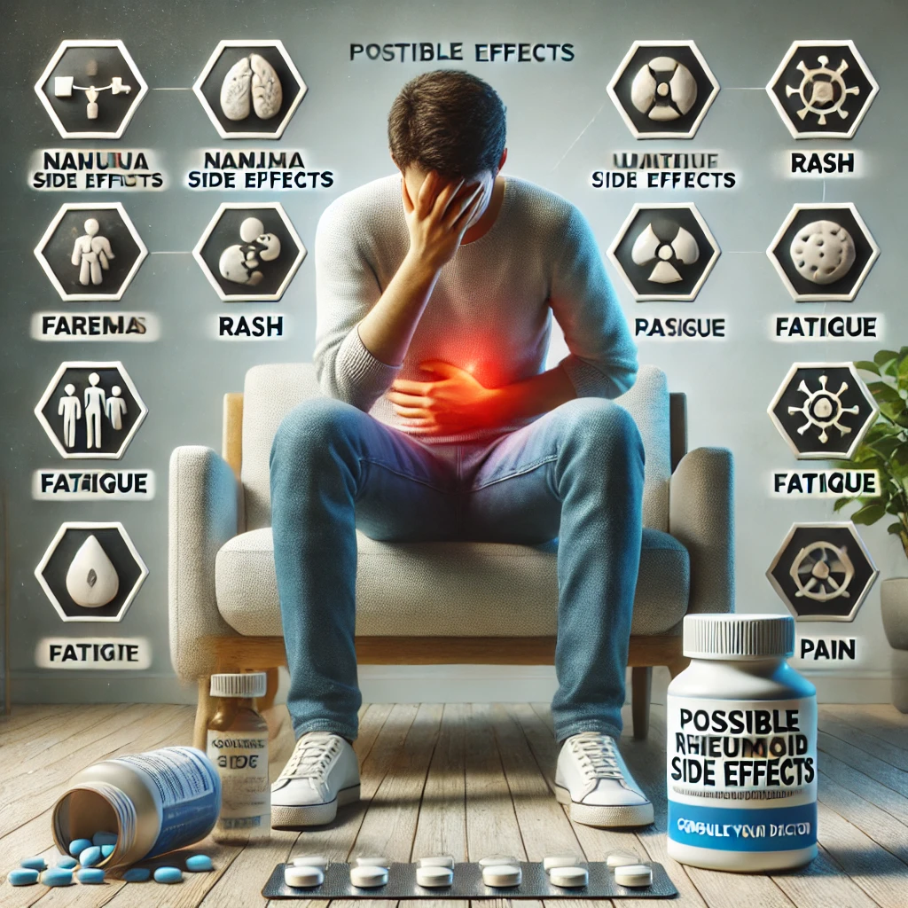 DMARDs: 간 독성, 면역 억제, 구토, 설사 등이 발생할 수 있습니다.