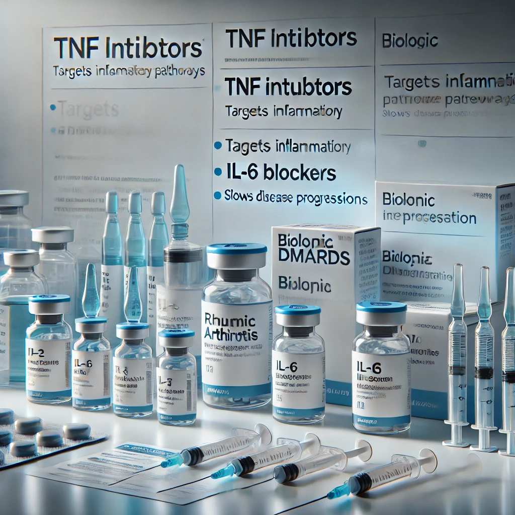 TNF 억제제: 인플릭시맙(Infliximab), 에타너셉트(Etanercept) 등이 대표적입니다.