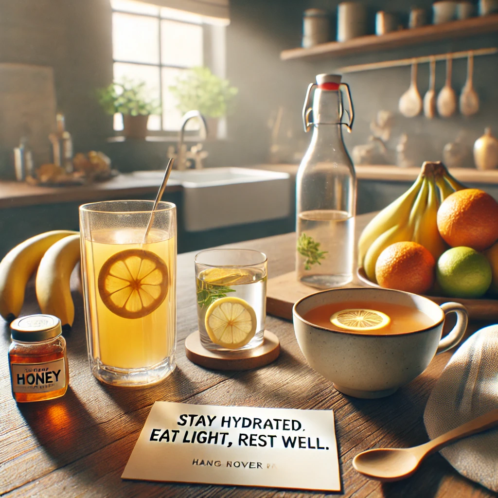👉 물은 물론, 전해질이 포함된 이온음료나 꿀물은 숙취 해소에 효과적입니다.