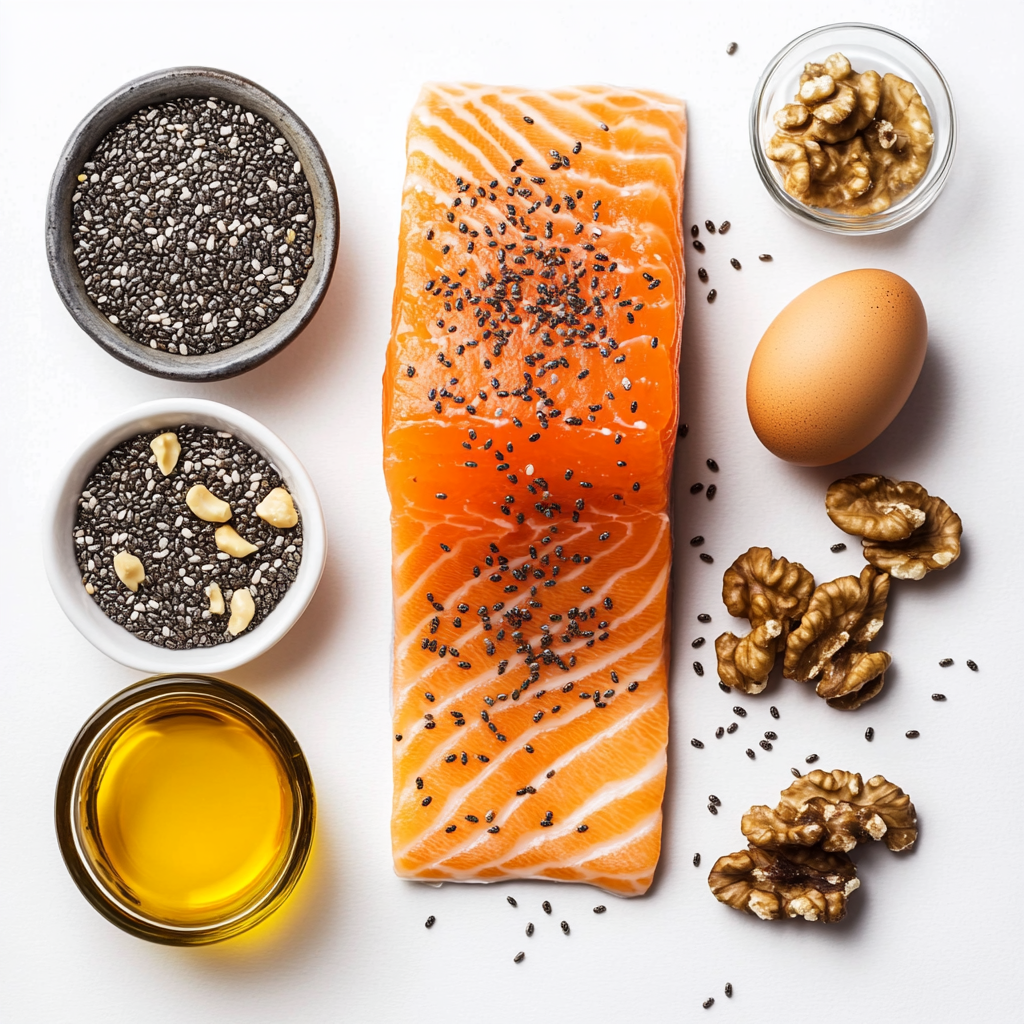 오메가3는 다양한 식품에서 얻을 수 있지만, 매일 꾸준히 섭취하기 어려운 경우 보충제를 활용하는 것도 좋은 방법이에요.