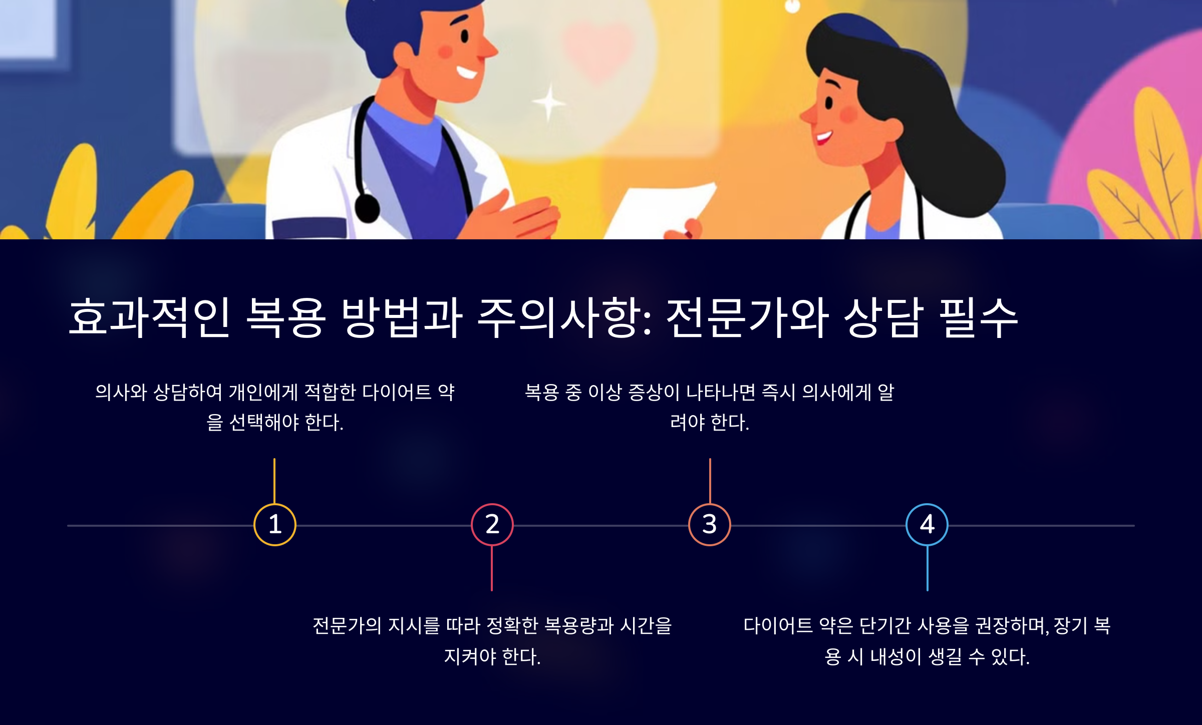 다이어트 약을 효과적으로 복용하려면 몇 가지 중요한 사항을 지켜야 해요. 우선, 약물을 복용하기 전에 반드시 의사나 약사와 상의하는 것이 중요해요. 자신의 건강 상태에 따라 복용량이나 약물의 종류가 달라질 수 있기 때문이죠.