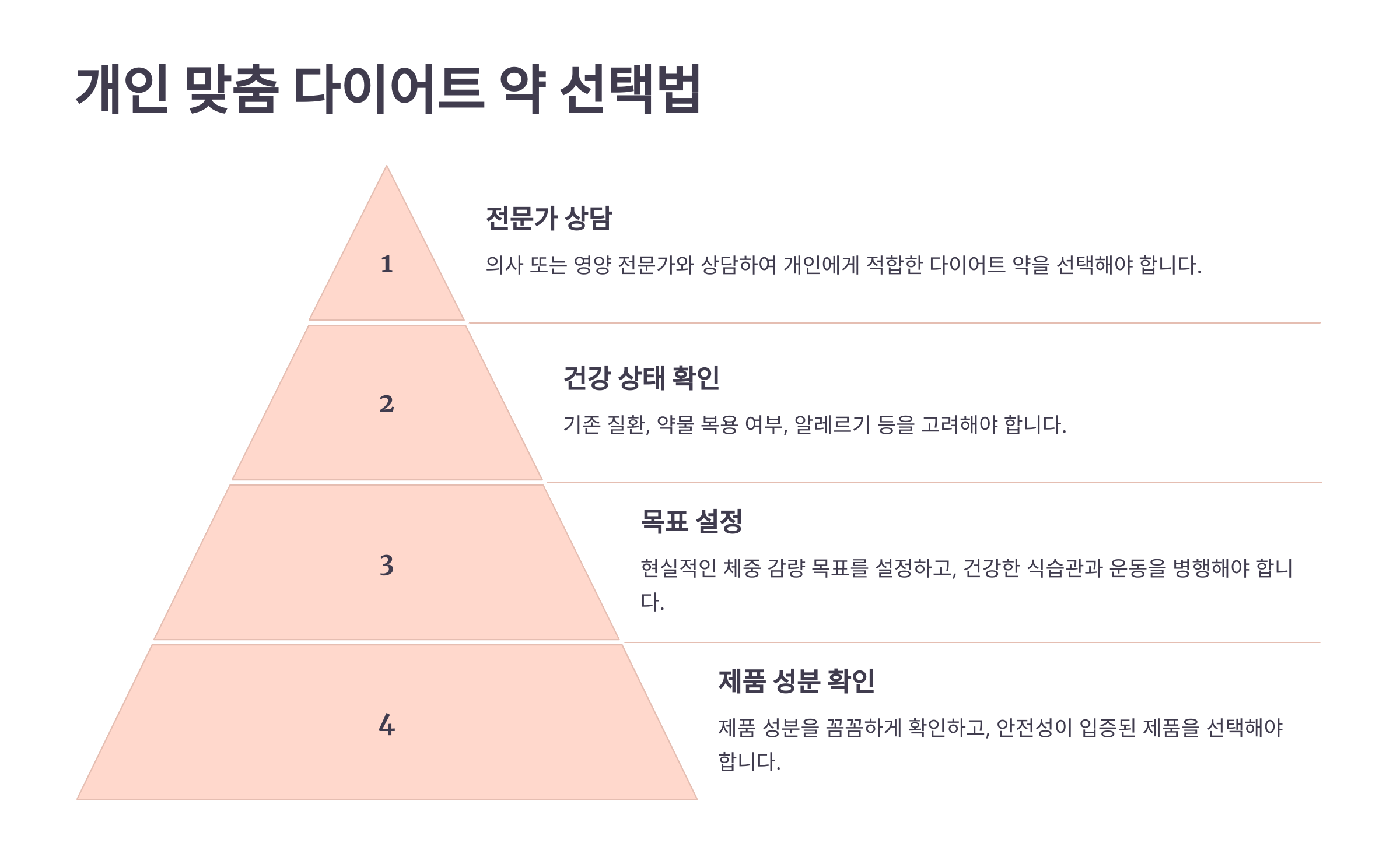 다이어트 약은 개인의 건강 상태와 목표에 맞게 선택하는 것이 중요해요. 단순히 유명하거나 추천받은 약물을 선택하는 것이 아니라, 아래의 기준을 참고해야 해요.