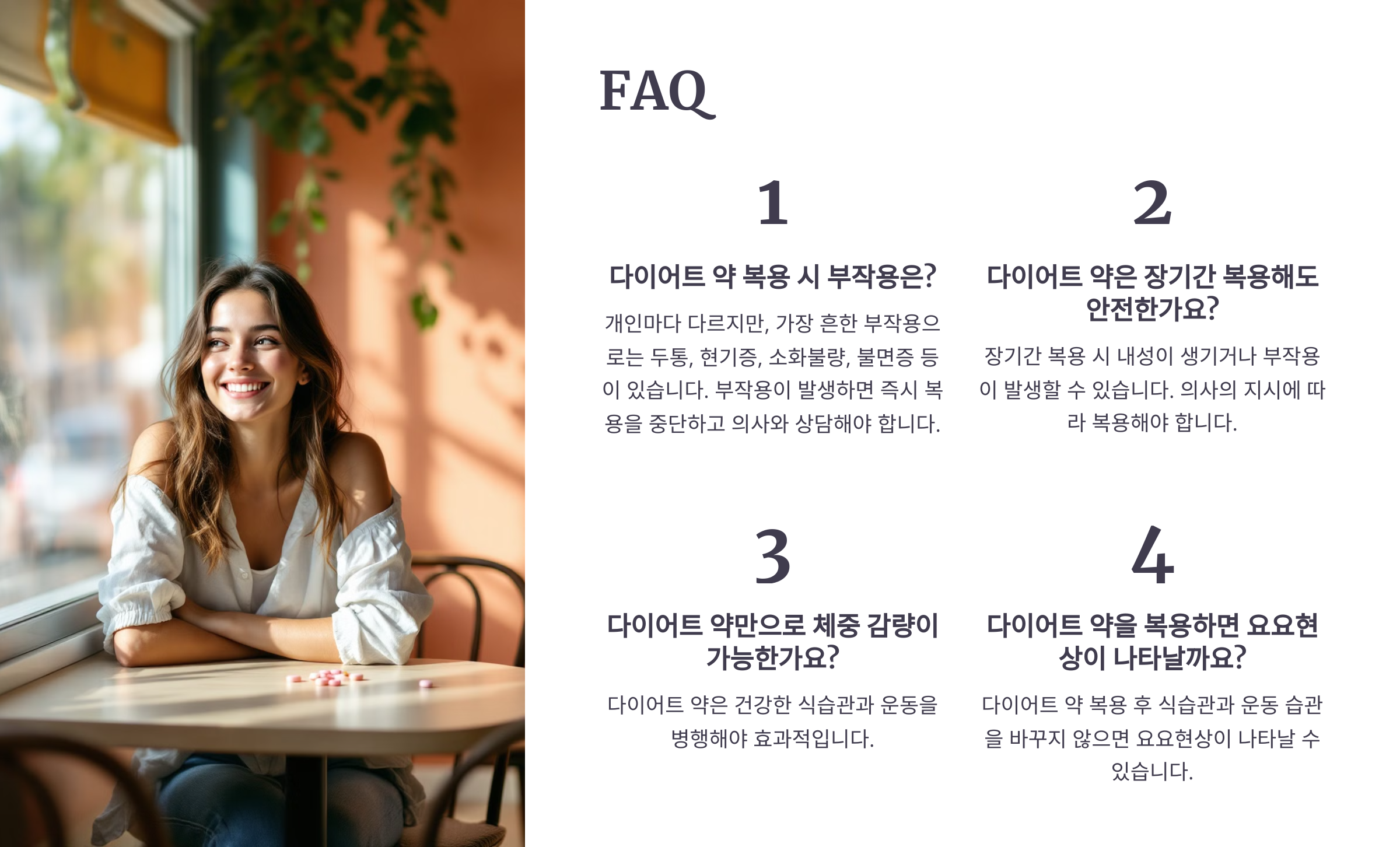 A8. 당연해요! 균형 잡힌 식단과 운동으로도 충분히 체중 감량이 가능하답니다. 약물은 보조적인 수단일 뿐이에요.