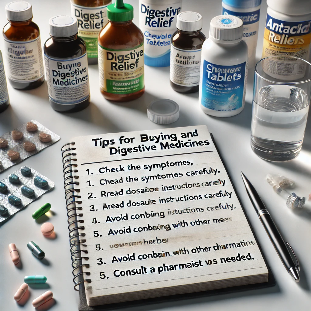 소화제 구매 전 약사에게 증상을 구체적으로 설명하세요. 가령 식사 후 속쓰림이 심한지, 소화가 더디고 무거운 느낌이 드는지 등을 알리면 적합한 약을 추천받을 수 있습니다.