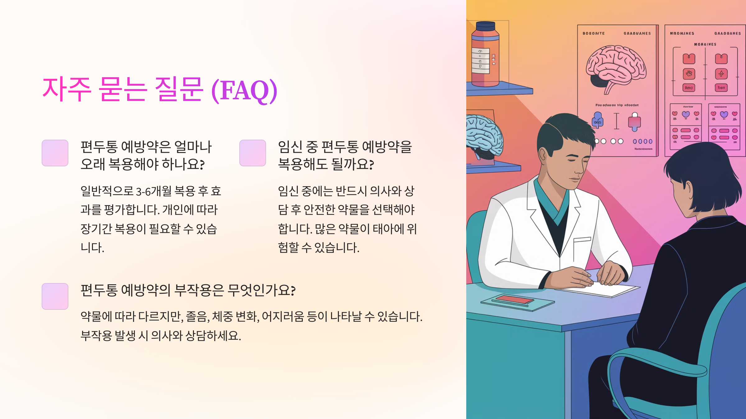 이제 편두통과 관련된 궁금증을 해결해 볼까요? 🤔