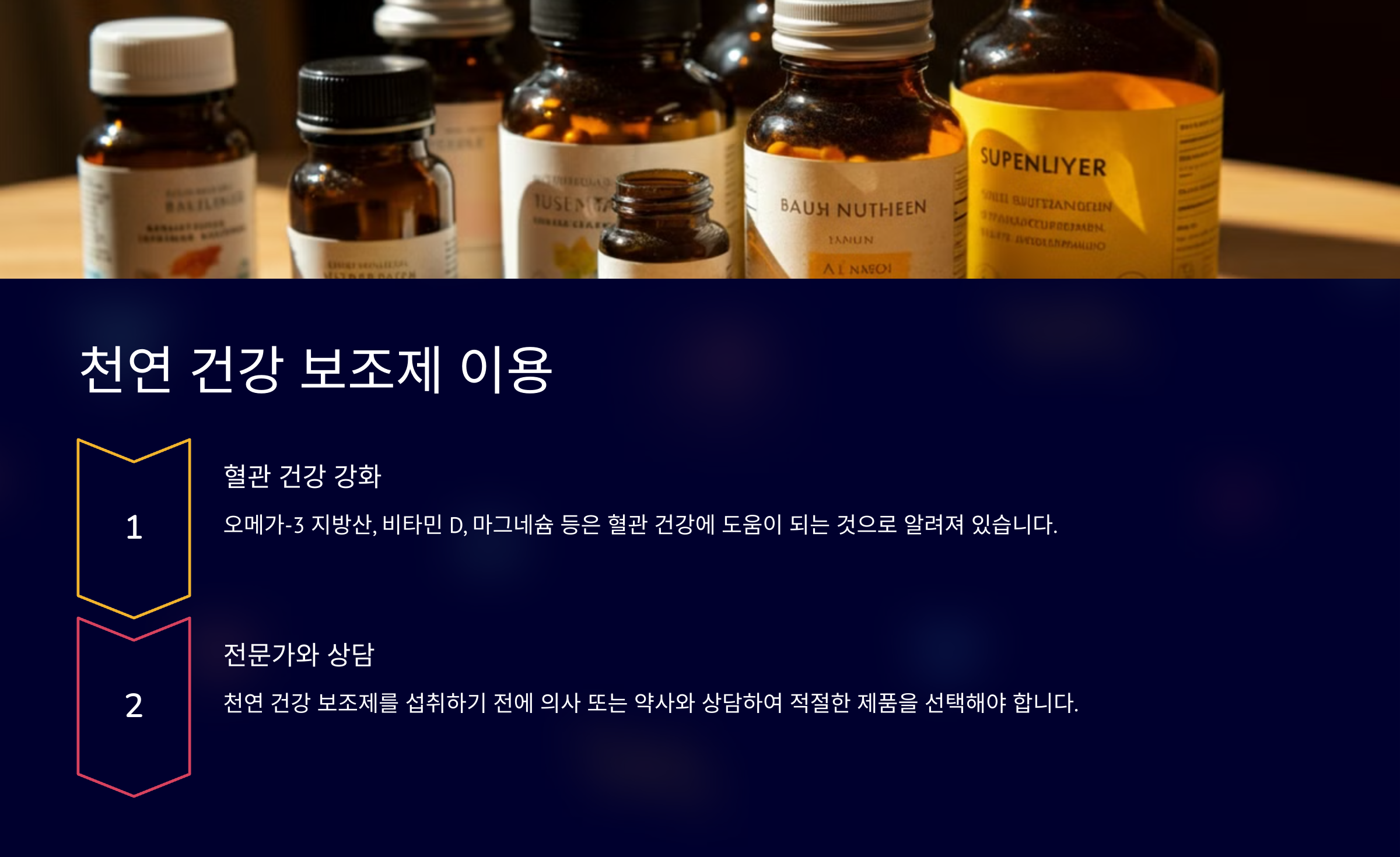 천연 보충제는 혈관 건강에 도움을 줄 수 있습니다.
