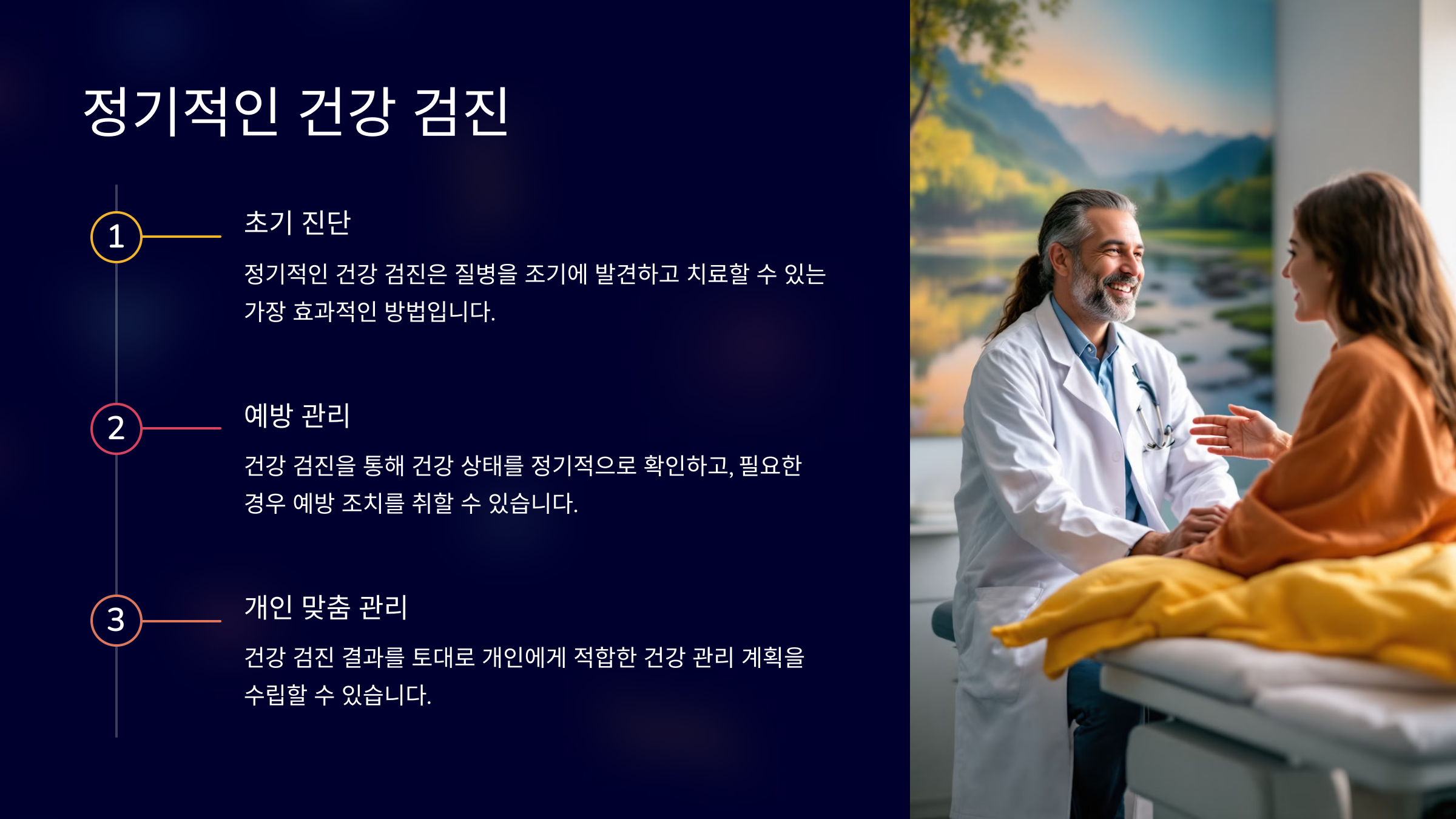 정기 검진을 통해 조기 질환을 예방할 수 있습니다.