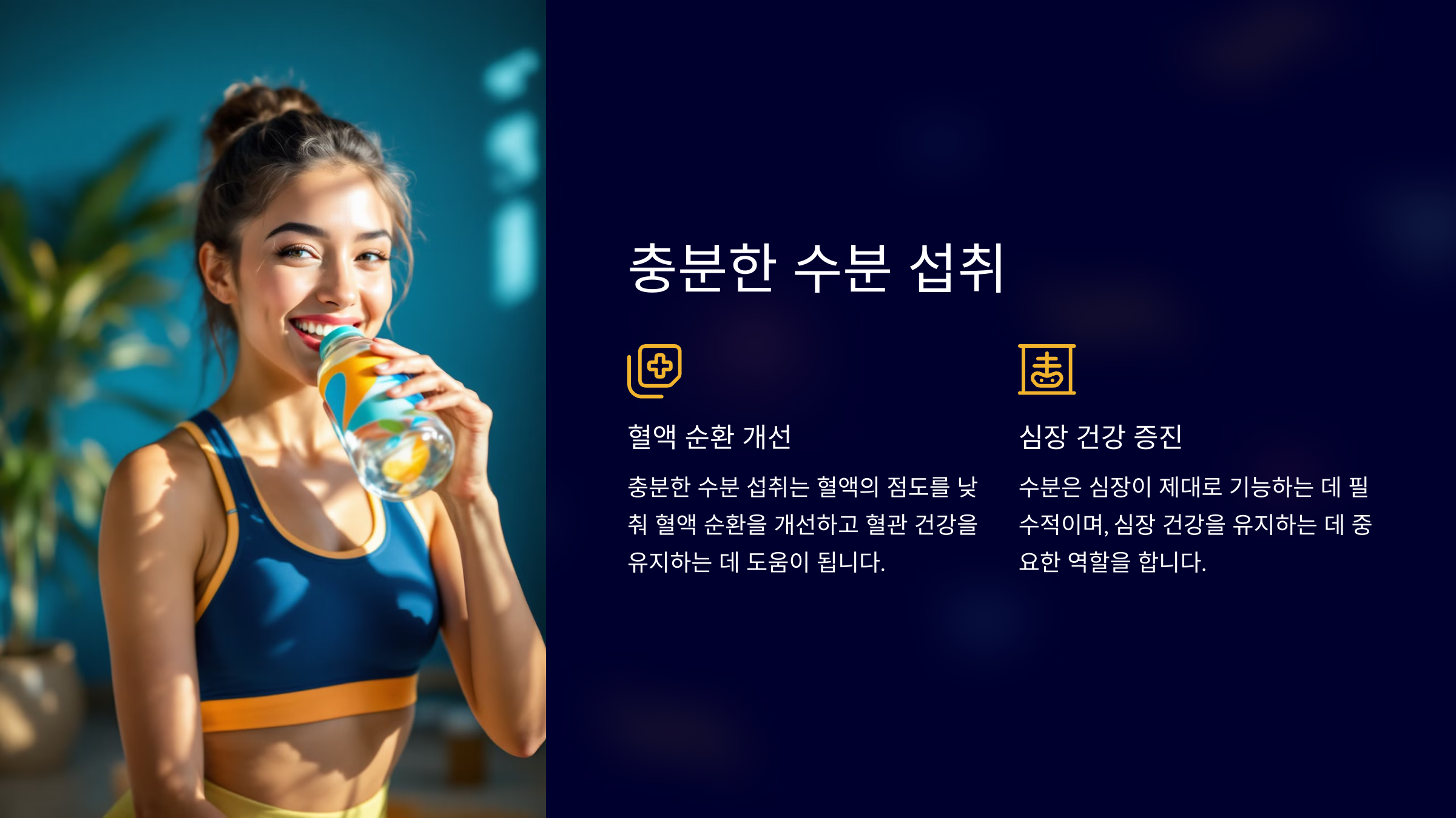 적절한 수분 섭취는 건강한 혈관을 유지하는 기본입니다.