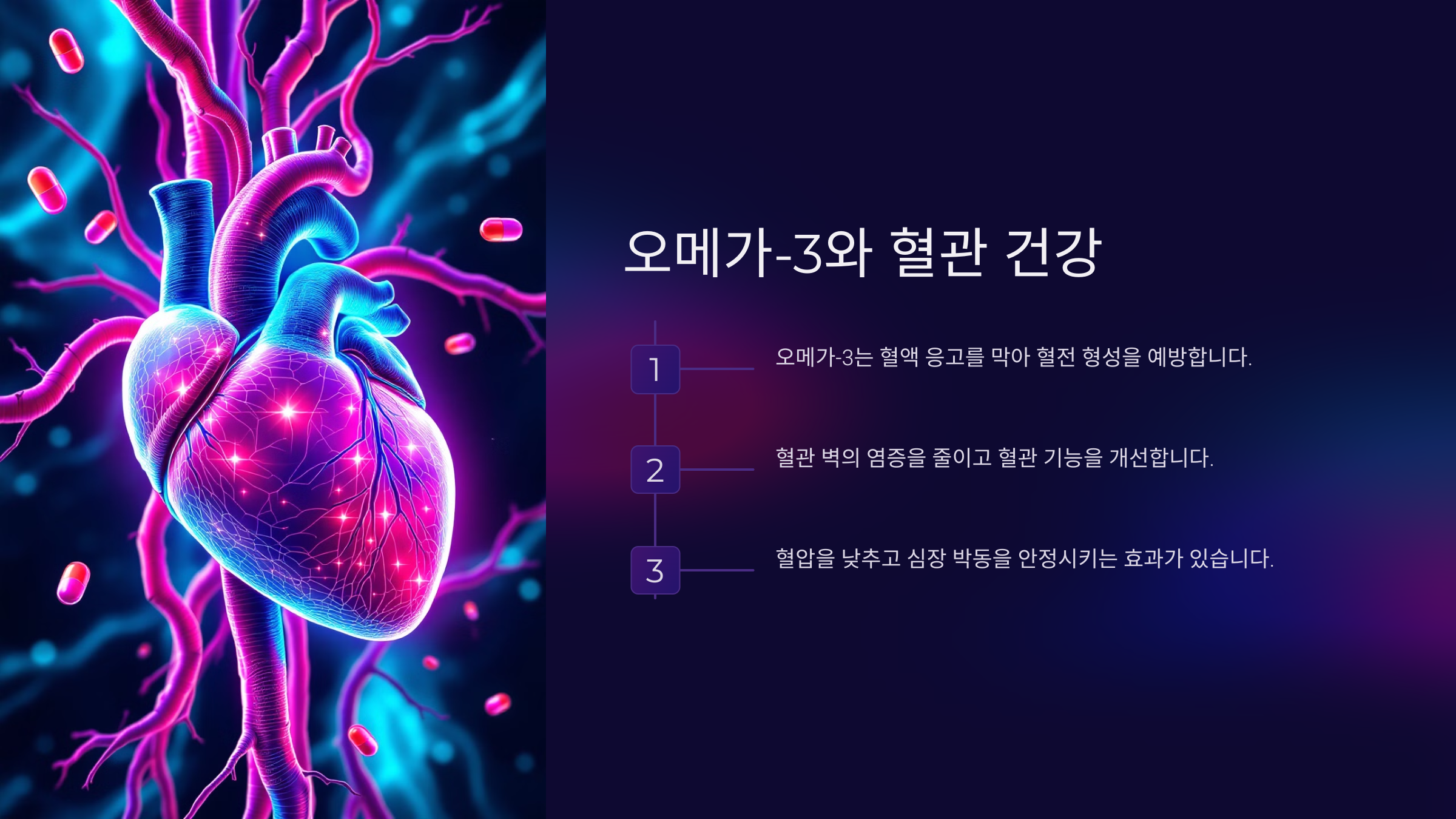 오메가-3는 혈소판 응집을 감소시켜 혈전 형성을 방지하는 효과도 있어요. 이는 뇌졸중이나 심근경색 같은 심혈관 질환의 위험을 줄이는 데 중요한 역할을 한답니다. 따라서 주 2~3회 생선을 섭취하는 것이 권장돼요.