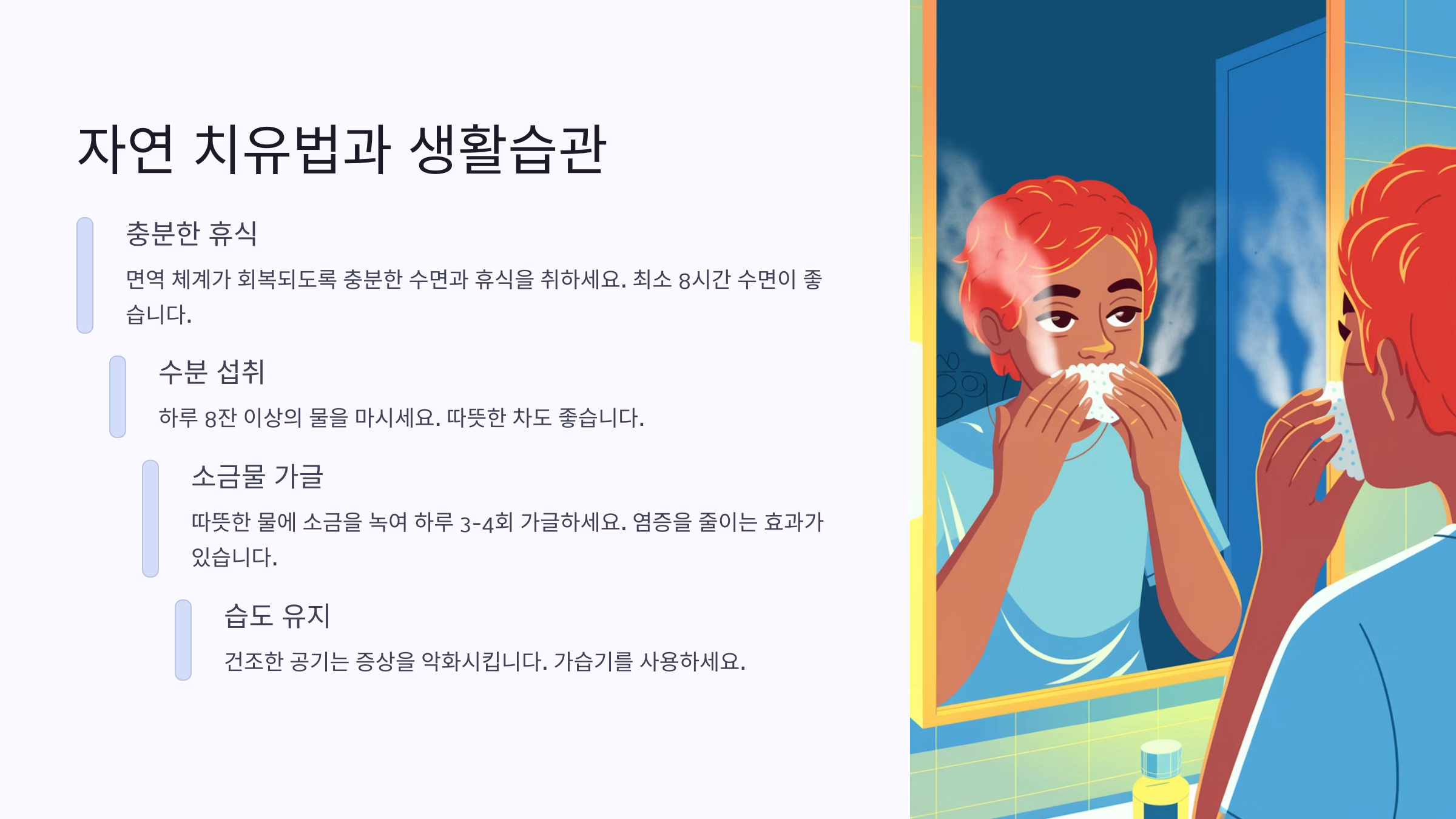 - 💧 물을 자주 마시면 목 점막이 촉촉하게 유지돼요.