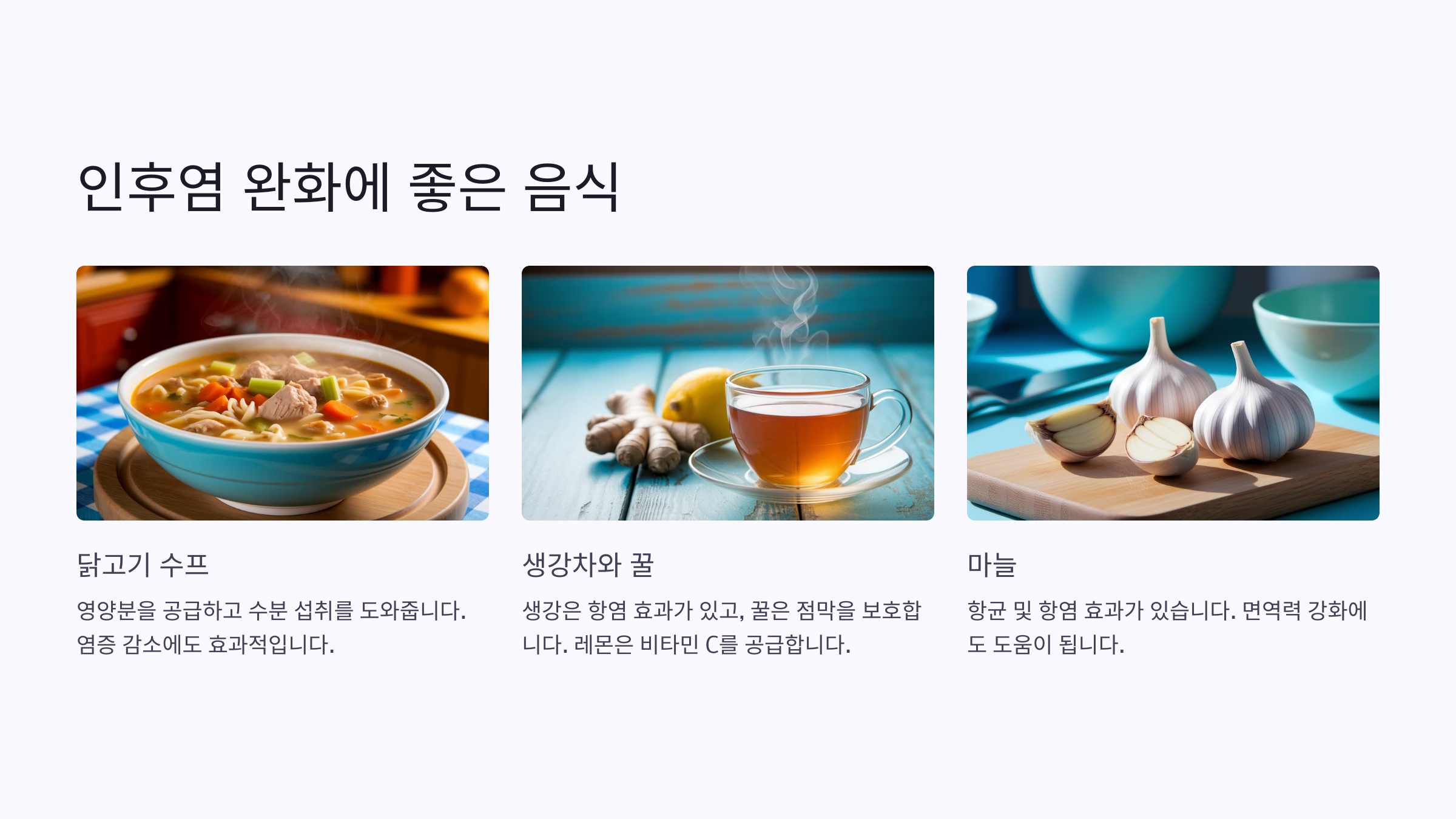 - 🍜 닭고기 수프는 염증을 줄여주는 효과가 있어요.