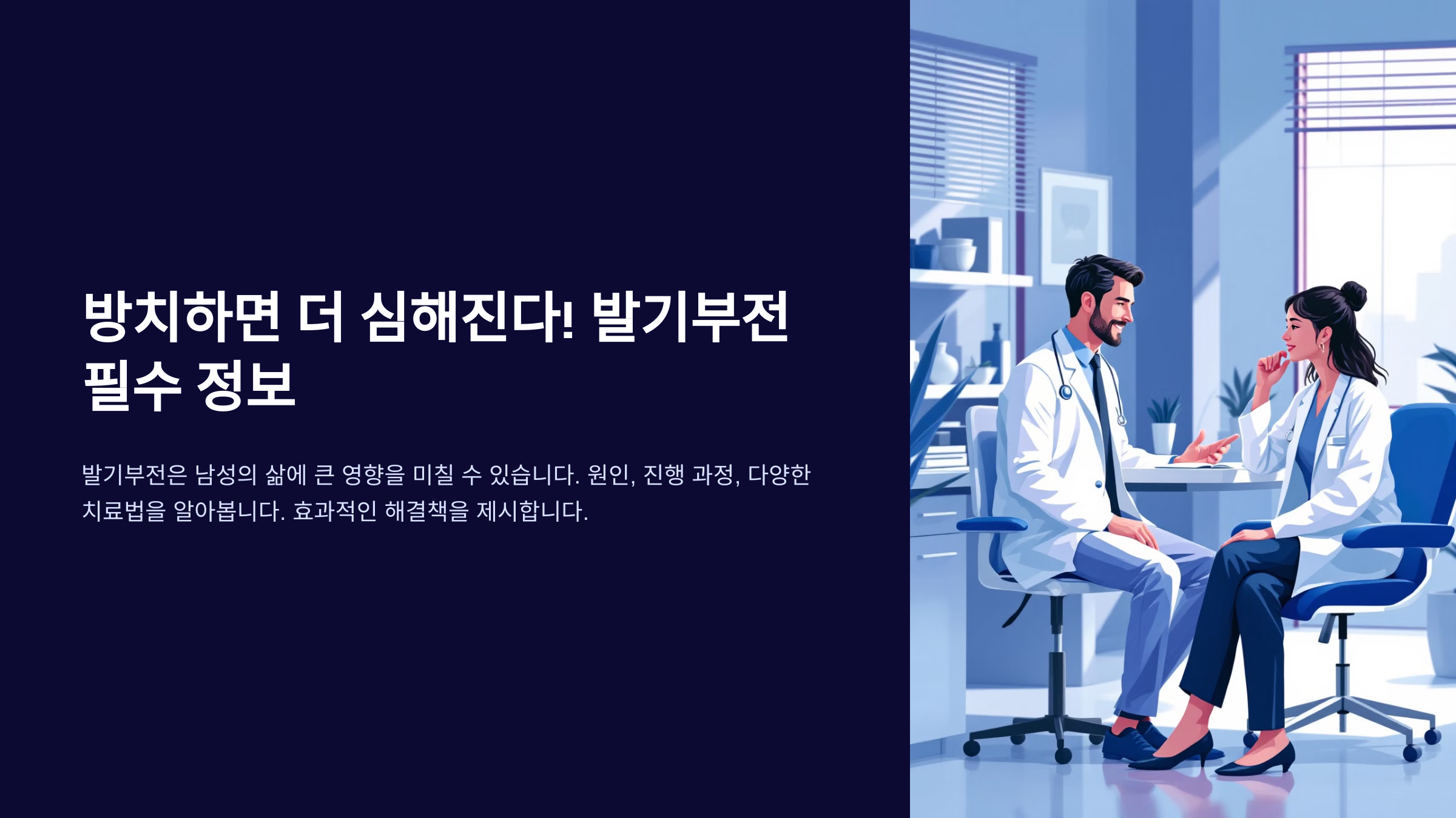 이 글에서는 발기부전의 원인과 진행 과정, 심인성과 기질성의 차이, 자가 진단법, 치료제 종류와 효과, 그리고 생활 습관 개선을 통한 자연치료 가능성까지 모두 알아볼 거예요. 발기력 강화에 좋은 운동과 식습관까지 포함했으니 끝까지 읽어보세요! 💪