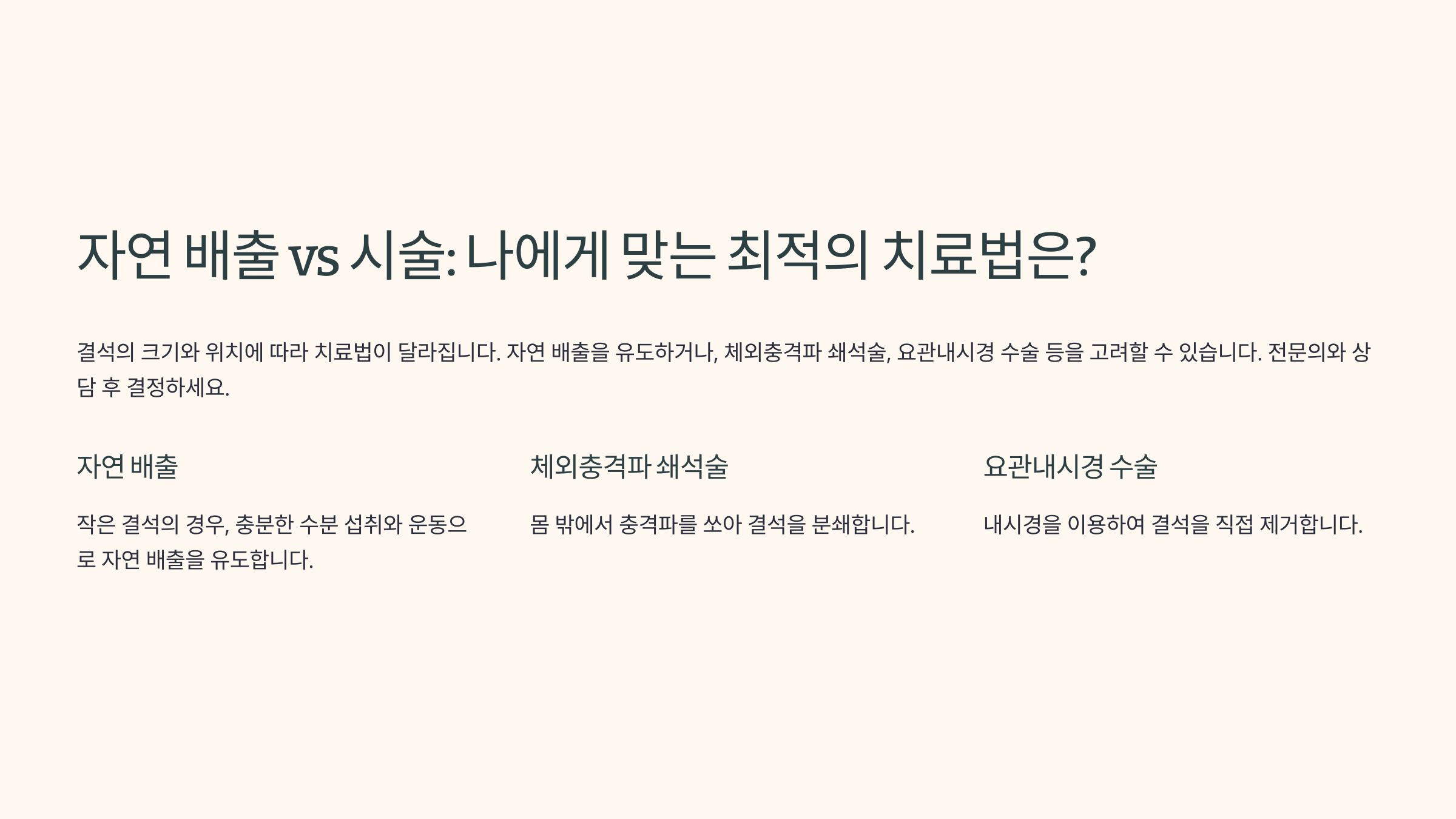 결석 크기와 위치에 따라 적절한 치료법을 선택하는 것이 중요해요! 😊