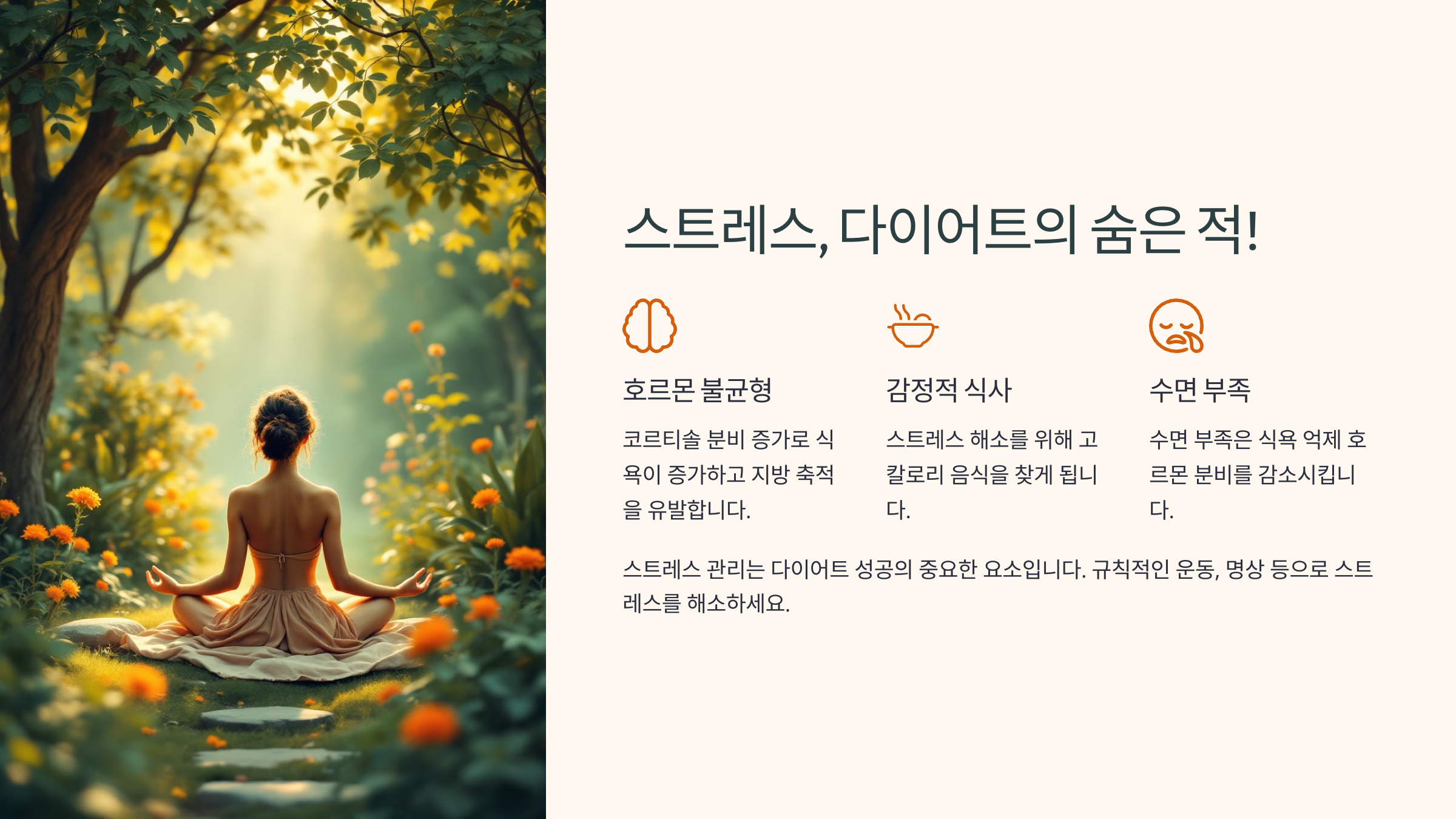 - 🌙 수면 부족 – 스트레스가 많으면 숙면을 방해하고 식욕 조절이 어려워져요.
