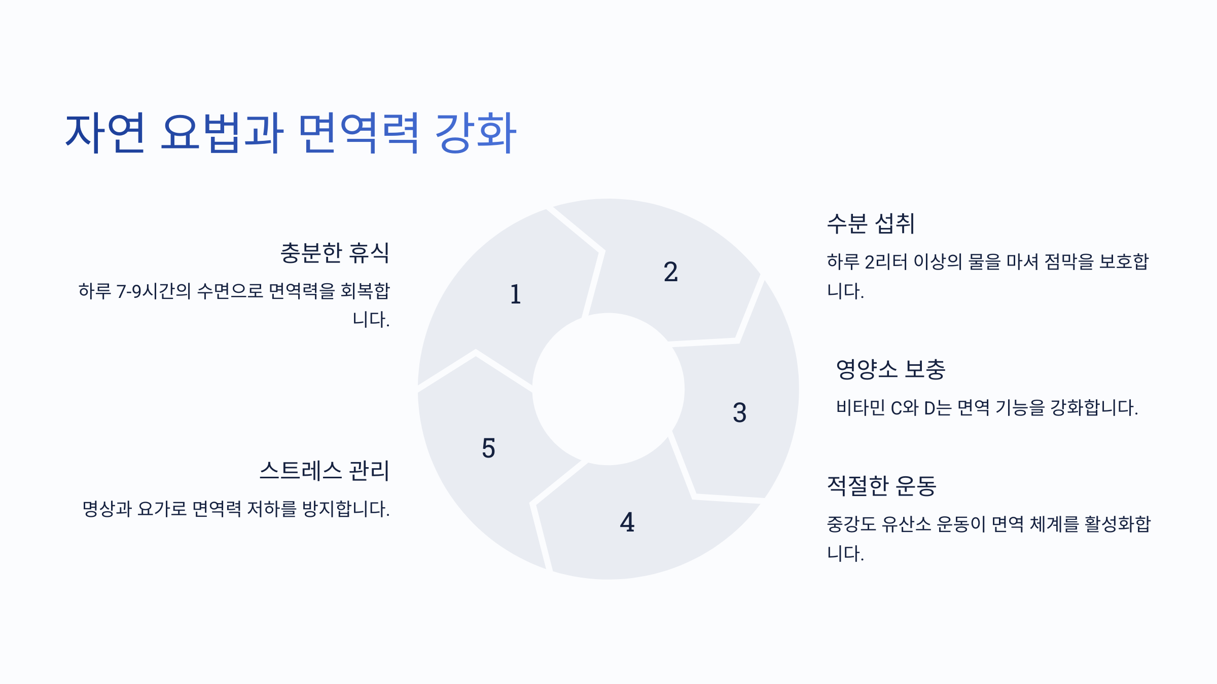| 충분한 수면 | 면역력 회복 | 하루 7~9시간 숙면 |