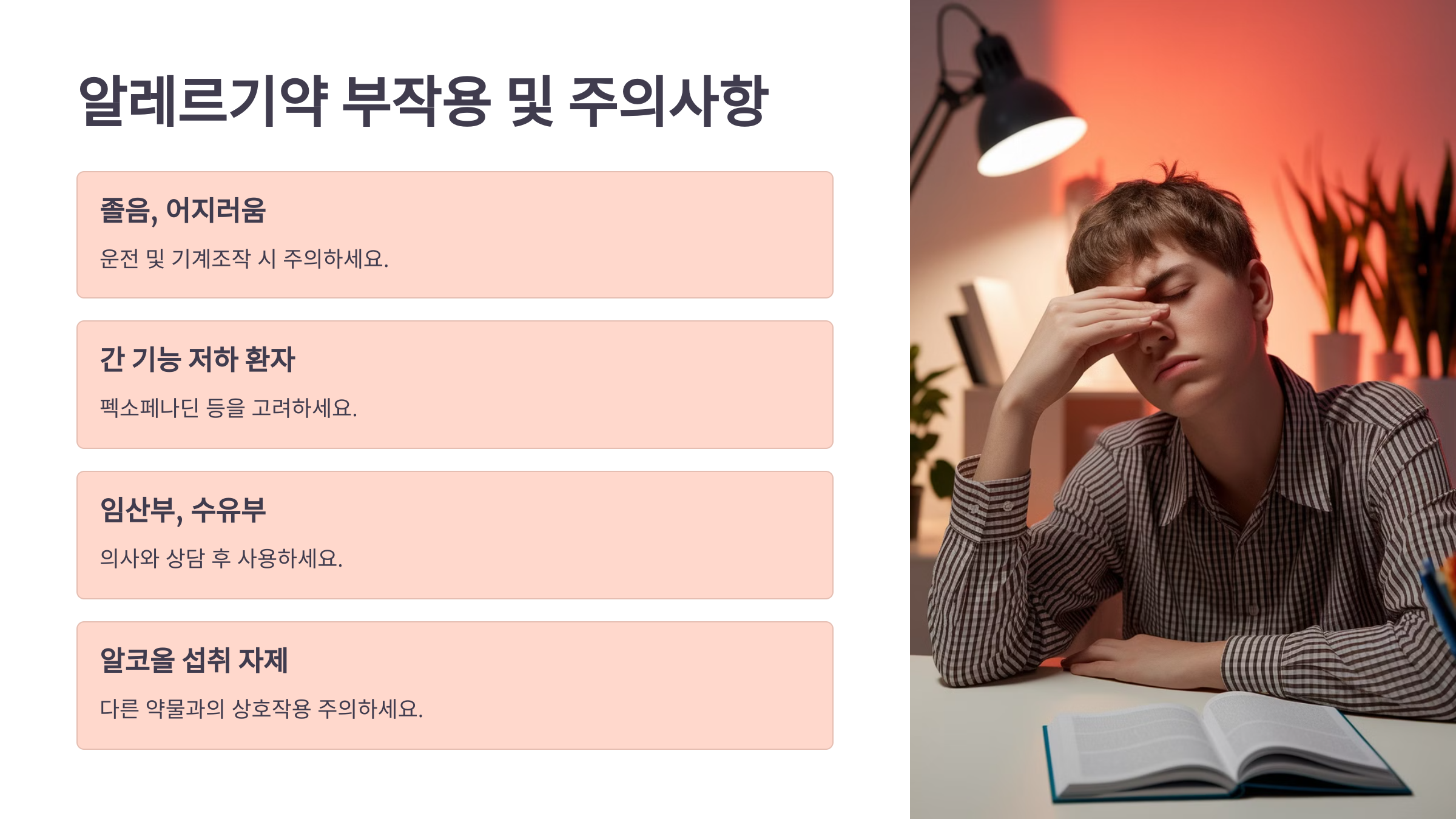 알레르기약을 복용할 때는 부작용을 주의해야 해요. 특히 어린이나 노약자, 임산부는 약물 선택에 신중해야 해요.
