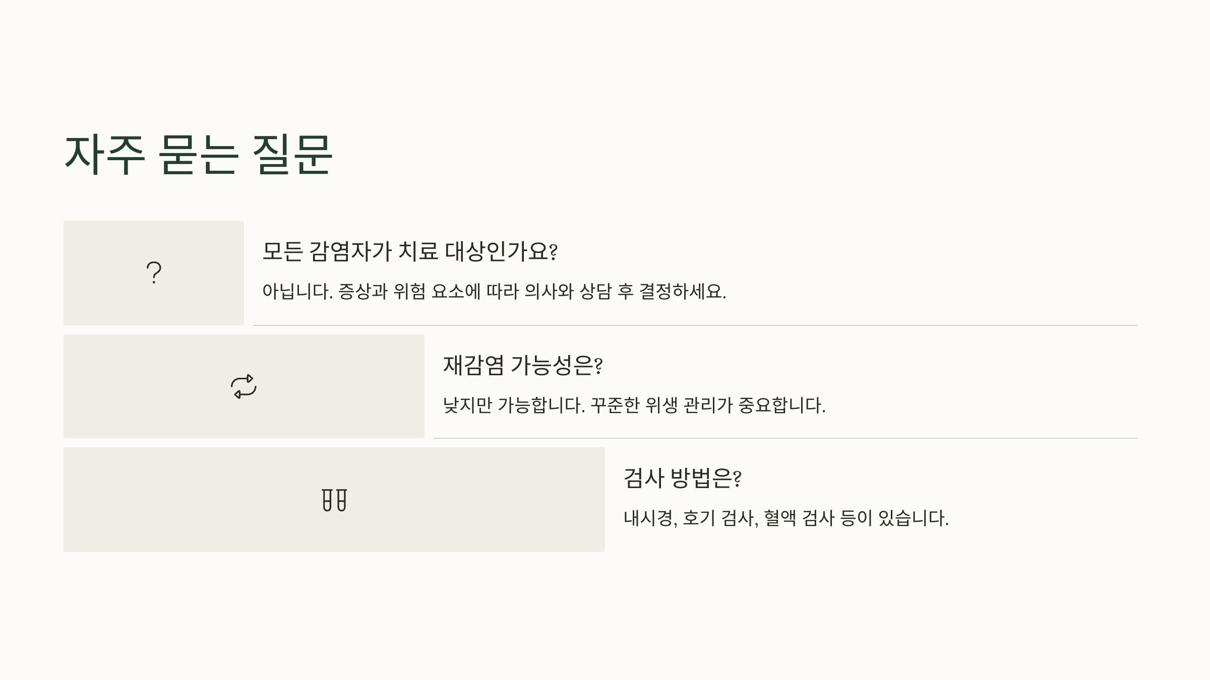 A8. 위생 관리를 철저히 하지 않으면 재감염될 가능성이 있어요.