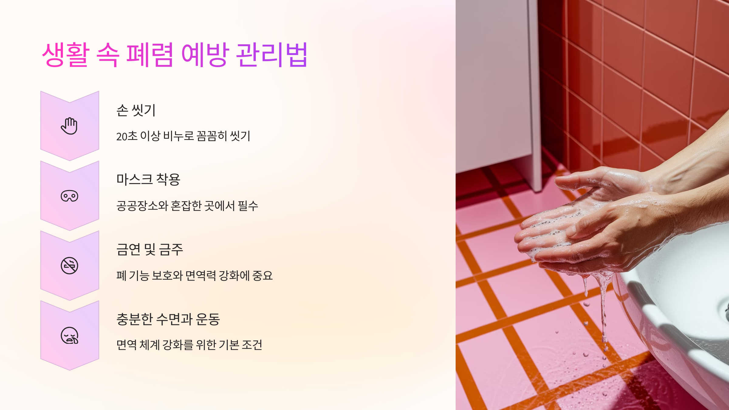 내가 생각했을 때, 작은 생활 습관 변화가 큰 차이를 만들 수 있어요. 건강한 습관을 유지하는 것이 가장 좋은 폐렴 예방법이에요! 😊